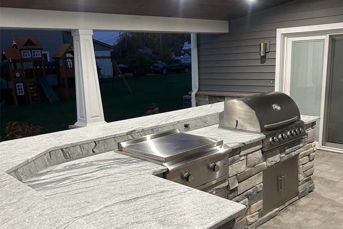 Our living space remodeling services include fireplace upgrades, laundry room redesigns, custom outdoor BBQ areas, built-in storage solutions, and elegant living room transformations.